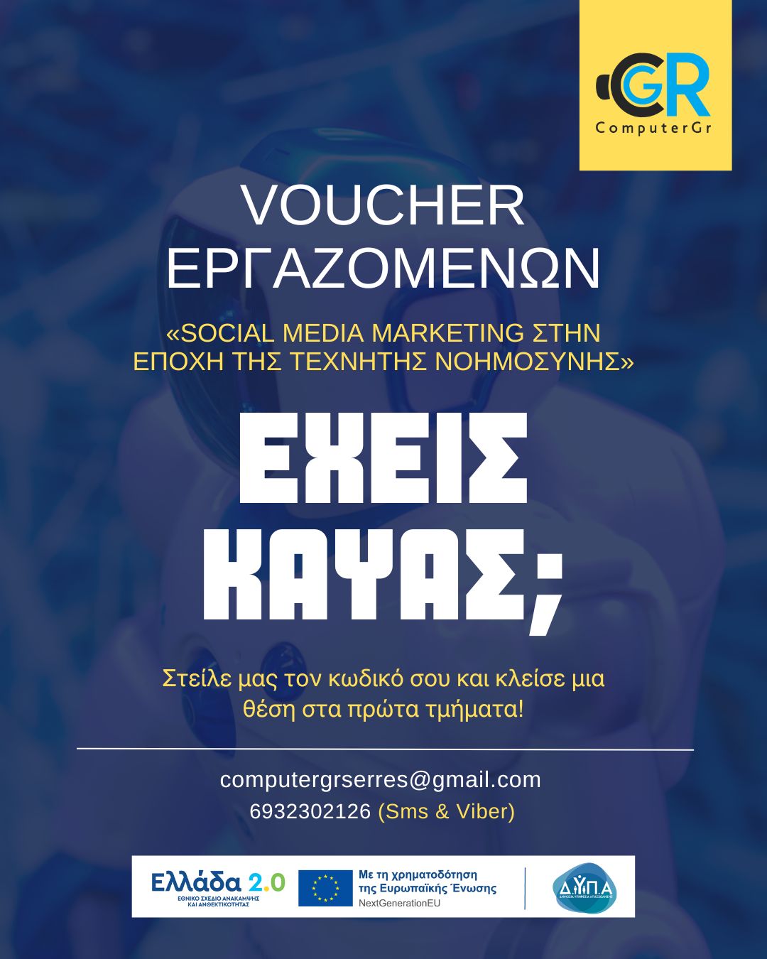 Slide 1Κέντρο Πληροφορικής,Ρομποτικής & Δια Βίου ΜάθησηςΜαραγκουδάκη 8, Σέρρες Τ: 23210 555 32 < Υπηρεσίες /> Πληροφορική Μαθητικά Τμήματα - Τμήματα Ενηλίκων ΡομποτικήΓια μαθητές 5-17 ετών / Συμμετοχή σε Πανελλήνιους & Παγκόσμιους διαγωνισμούς Προγραμματισμός C / C++ / PYTHON (Πιστοποίση 3 επιπέδων) AI KIDEXΝέο Εκπαιδευτικό Πρόγραμμα εκμάθησης A.I. ΣΥΜΒΟΥΛΕΥΤΙΚΗ ΕΠΑΓΓΕΛΜΑΤΙΚΟΣ ΠΡΟΣΑΝΑΤΟΛΙΣΜΟΣ < Επιδοτούμενα - Vouchers /> Voucher Ανέργων σε κλάδους αιχμής - Επίδομα 2000€ Voucher Ανέργων & Εργαζομένων - Επίδομα 750€ Πιλοτικό Voucher Ανέργων - Επίδομα 400€ Νέο Voucher Ανέργων Voucher Εργαζομένων Voucher Τουρισμού < Σεμινάρια - Πιστοποιήσεις /> Μαθήματα & Πιστοιποίηση AUTOCAD Τεχνητή Νοημοσύνη - A.I. στην εκπαίδευση Σχολικός Εκφοβισμός (Bullying) Πρόγραμμα επαγγελματικής κατάρτισης ανυψωτικών μηχανημάτων Πρώτες Βοήθειες Πιστοποίηση LTE - Online εξετάσεις Αγγλικών LTE Πιστοποιήσεις αγροτών και ψεκαστικών μηχανημάτων Σεμινάριο Υγιεινής και Ασφάλειας Τροφίμων Ε.Φ.Ε.Τ. < Meet Our Team /> Διαβάστε Περισσότερα < Οι χώροι μας /> ISO_9001 2015📘 Άνοιξε το PDF ISO_27701 2019 📘 Άνοιξε το PDF ISO_27001 2022📘 Άνοιξε το PDF